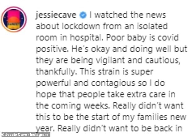 Το μωρό βρίσκεται σε κούνια σε απομονωμένο δωμάτιο. Η σταρ, με ανάρτησή της επιβεβαίωσε ότι το μωρό είναι καλά αν και μολύνθηκε με το πανίσχυρο και μεταδοτικό στέλεχος του ιού. Ο Άμπραχαμ γεννήθηκε τον Οκτώβριο και πέρασε τις πρώτες μέρες της ζωής του στη μονάδα εντατικής θεραπείας νεογνών έπειτα από μία τρομακτική εγκυμοσύνη προτού πάρει εξιτήριο τον Νοέμβριο. Η Τζέσι έχει άλλα δύο παιδιά με τον κωμικό ηθοποιό Άλφι Μπράουν.
