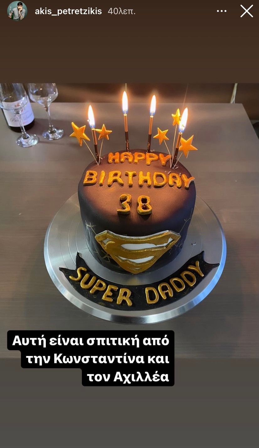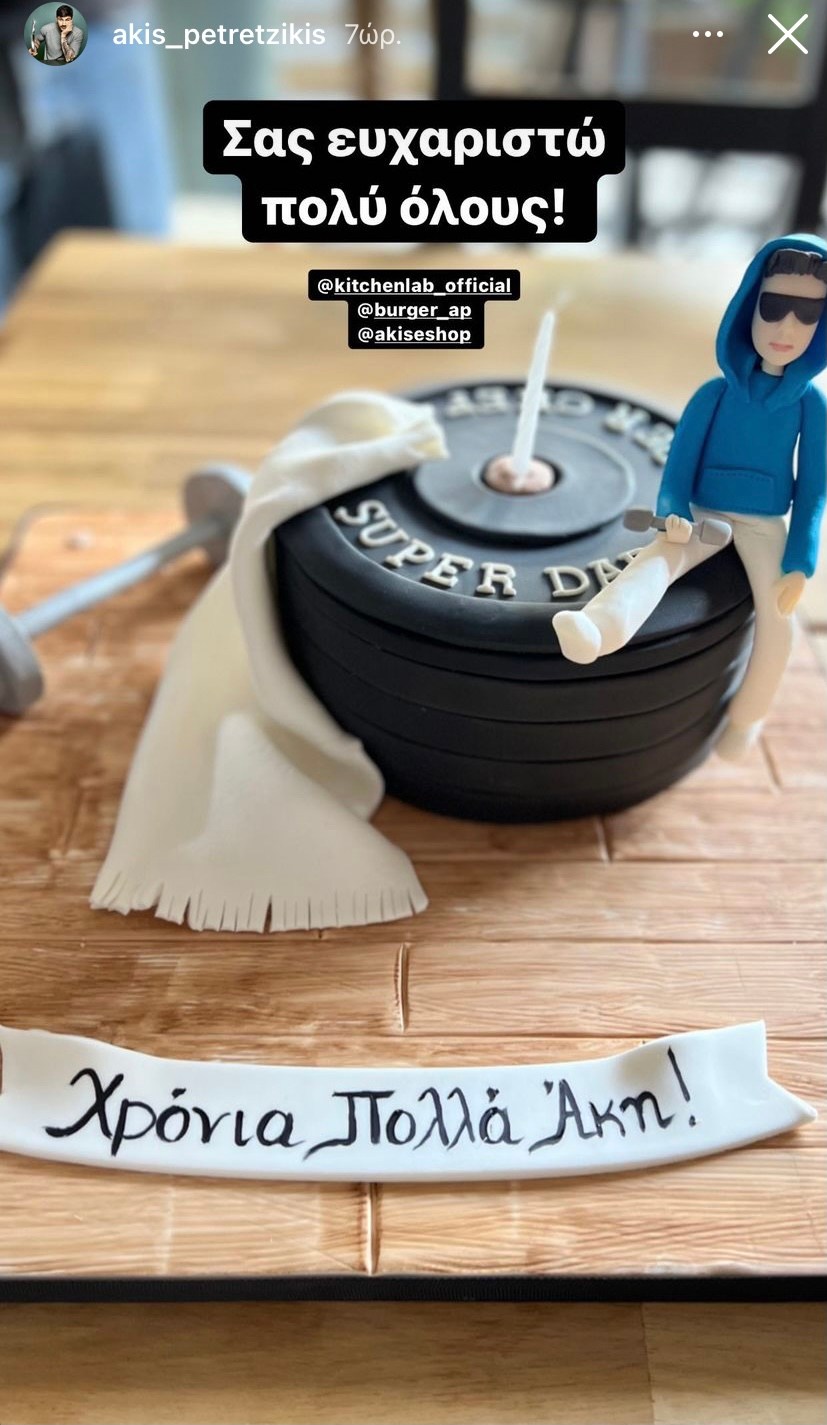 Οι συνεργάτες του φρόντισαν ώστε να είναι η μέρα του ξεχωριστή κι έτσι του ετοίμασαν μια σειρά από εκπλήξεις τόσο στο γραφείο του όσο και στο κατάστημα που διατηρεί. Βέβαια, η τούρτα που τον περίμενε και στο Kitchen Lab έκλεψε τις εντυπώσεις. «Χρόνια πολλά Άκη, Super dad» έγραφε πάνω στην τούρτα, την οποία και έδειξε στους διαδικτυακούς του φίλους με φωτογραφίες στον προσωπικό του λογαριασμό στο Instagram.