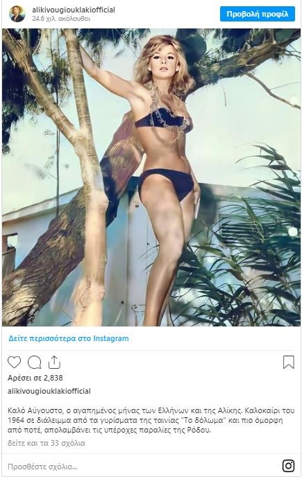 Τα γυρίσματα έγιναν στην όμορφη Ρόδο με την «εθνική» μας σταρ να εμφανίζεται ως το απόλυτο θηλυκό, άλλοτε με εντυπωσιακά φορέματα κι άλλοτε με μικροσκοπικά μπικίνι. Μια τέτοια σπάνια φωτογραφία που κόβει την ανάσα, πόσταρε ο γιος της Γιάννης Παπαμιχαήλ στο Instagram για να καλωσορίσει τον Αύγουστο.