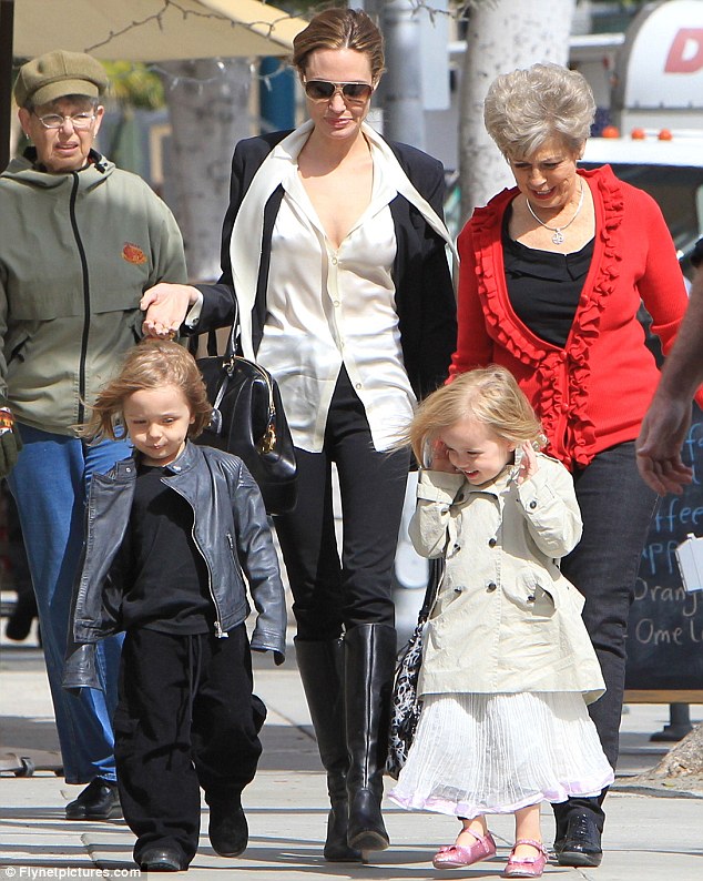 Πήρε τα δίδυμα Knox και Vivienne και πήγαν βόλτα. Τα πανέμορφα διδυμάκια είναι ήδη τριών ετών και δεν φαίνεται να χρειάζονται την βοήθεια της διάσημης μαμάς τους για να περπατήσουν στο δρόμο! Πιάστηκαν χεράκι χεράκι και ξεκίνησαν την βόλτα τους!Μαζί ήταν και η… πεθερά της Angelina, η μητέρα του Brad!