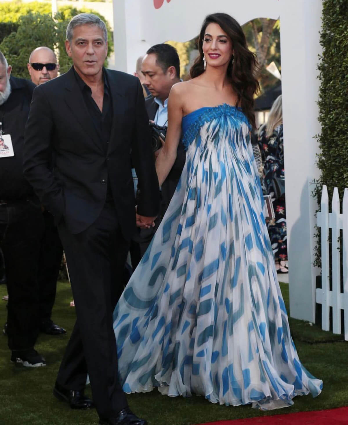 Το όχι πολύ αυστηρό. Αυτό που είναι ανάλαφρο, αλλά παράλληλα και κατάλληλο να φορεθεί ως office look. Η Amal αντικαθιστά το μακρύ μανίκι του blazer με κοντό και την pencil «σοβαρή» φούστα με μία creamy πλισέ στο ύψος του γόνατου, δημιουργώντας το πιο ιδανικό ταγιέρ του καλοκαιριού.