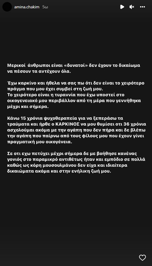Η Αμίνα Χακίμ “άνοιξε” την καρδιά της μέσω social media και τα όσα έγραψε στις αναρτήσεις της συγκλονίζουν.