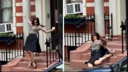 Η ηθοποιός σηκώθηκε γρήγορα χαμογελώντας και είπε στα μέλη του συνεργείου που έσπευσαν κοντά της: «Είμαι καλά!».