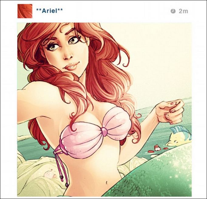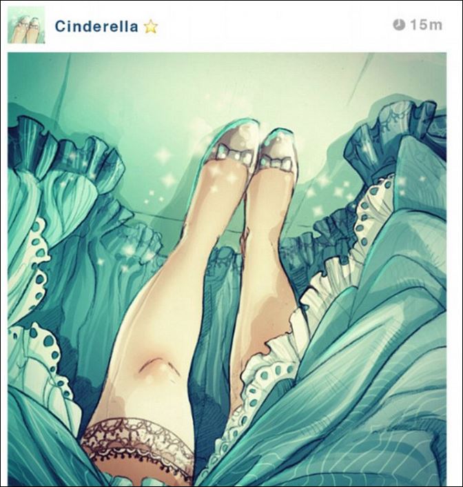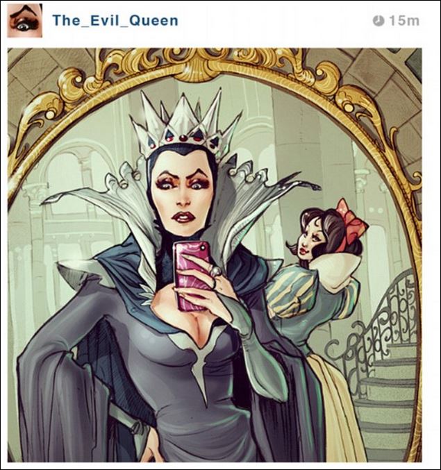Η Ariel ποζάρει με φόντο τη θάλασσα, ο Ηρακλής φωτογραφίζει το θεϊκό του κορμί, η Jasmine δίνει ένα φιλί στον Αλαντίν, η κακιά μάγισσα ποζάρει μπροστά στον καθρέφτη της και πίσω είναι η Χιονάτη και η Σταχτοπούτα ανεβάζει στο.. Instagram τα γοβάκια της.