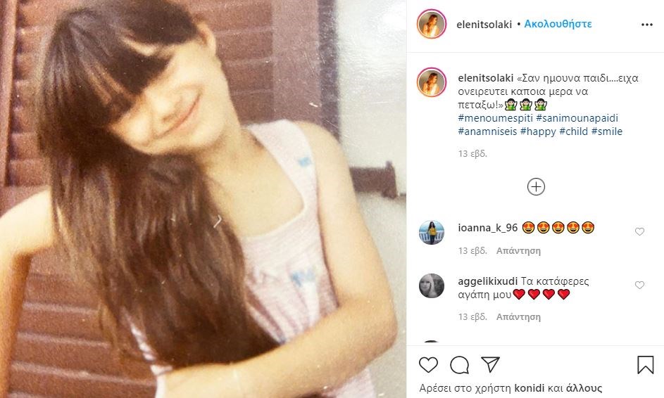 Μία φωτογραφία από την παιδική της ηλικία θέλησε να μοιραστεί με τους διαδικτυακούς της φίλους η γνωστή παρουσιάστρια.