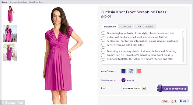 Μάλιστα η ιστοσελίδα διαφημίζει και άλλα φορέματα της εταιρίας τα οποία έχει φορέσει η Κέϊτ, ακόμα και κατά τη διάρκεια της εγκυμοσύνης της.