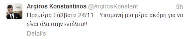 Σύμφωνα με πληροφορίες, η πρεμιέρα αναβαλλεται γιατί τα σκηνικά δεν είναι έτοιμα και η πρόβα τζενεράλε, θα γίνει απόψε.
