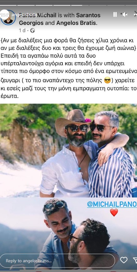 Την πρώτη τους κοινή επίσημη εμφάνιση θα κάνουν το Σάββατο το μεσημέρι στην τηλεόραση ο Άγγελος Μπράτης και ο σύντροφός του, Σαράντος Γεωργίου.
