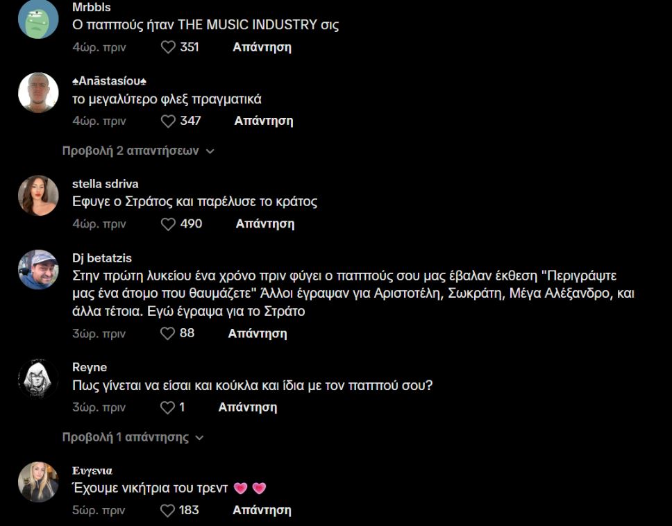 Η νεαρή ανέβασε ένα ποστ το οποίο οδηγούσε στην αποκάλυψη ότι ο παππούς της δεν είναι άλλος από τον θρυλικό Στράτο Διονυσίου.