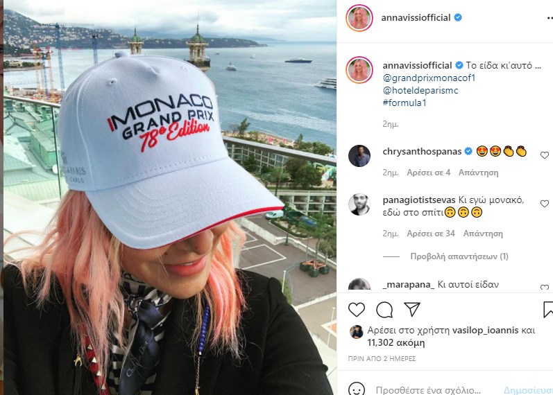 Συναντήθηκε μάλιστα με τον Πρίγκιπα Αλβέρτο του Μονακό, με τον οποίο φωτογραφήθηκε και δημοσίευσε μια κοινή φωτογραφία. «Νιώθω σαν πριγκίπισσα», έγραψε χαρακτηριστικά η Άννα Βίσση. Φυσικά τα ροζ μαλλιά της τραγουδίστριας, που είναι το νέο look που έχει υιοθετήσει το τελευταίο διάστημα, συζητήθηκε αρκετά από τους ακολούθους της.