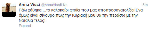 H Άννα Βίσση μπορεί να χάθηκε λίγο, αλλά την Κυριακή θα χαρίσει στους θαυμαστές της, μια τηλεοπτική εμφάνιση, που θα συζητηθεί…Διαβάστε τι έγραψε στο twitter της…