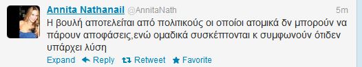 Οι εκλογές, οι συναντήσεις των αρχηγών και η προσπάθεια για τη δημιουργία κυβέρνησης έσπρωξαν την Αννίτα Ναθαναήλ να διατυπώσει αιφνιδιαστικά έναν πολιτικό προβληματισμό στο twitter της. Δείτε τι έγραψε :
