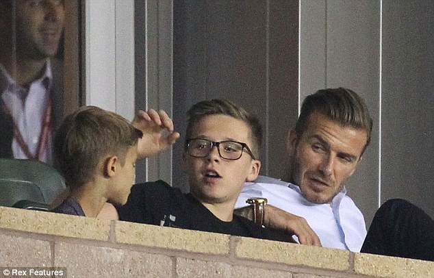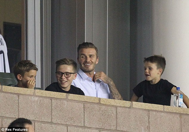 Η φωτογραφία τους είναι από μια έξοδο…μόνο για άντρες! Μπαμπάς και γιοι πήγαν σε αγώνα ποδοσφαίρου, κατά την προσφιλή τους συνήθεια.Το καλό της υπόθεσης είναι ότι και τα τρία παιδιά χαμογελούν, όπως και ο David. Δεν έμοιασαν στη μαμά τους, που είναι συνεχώς αγέλαστη…