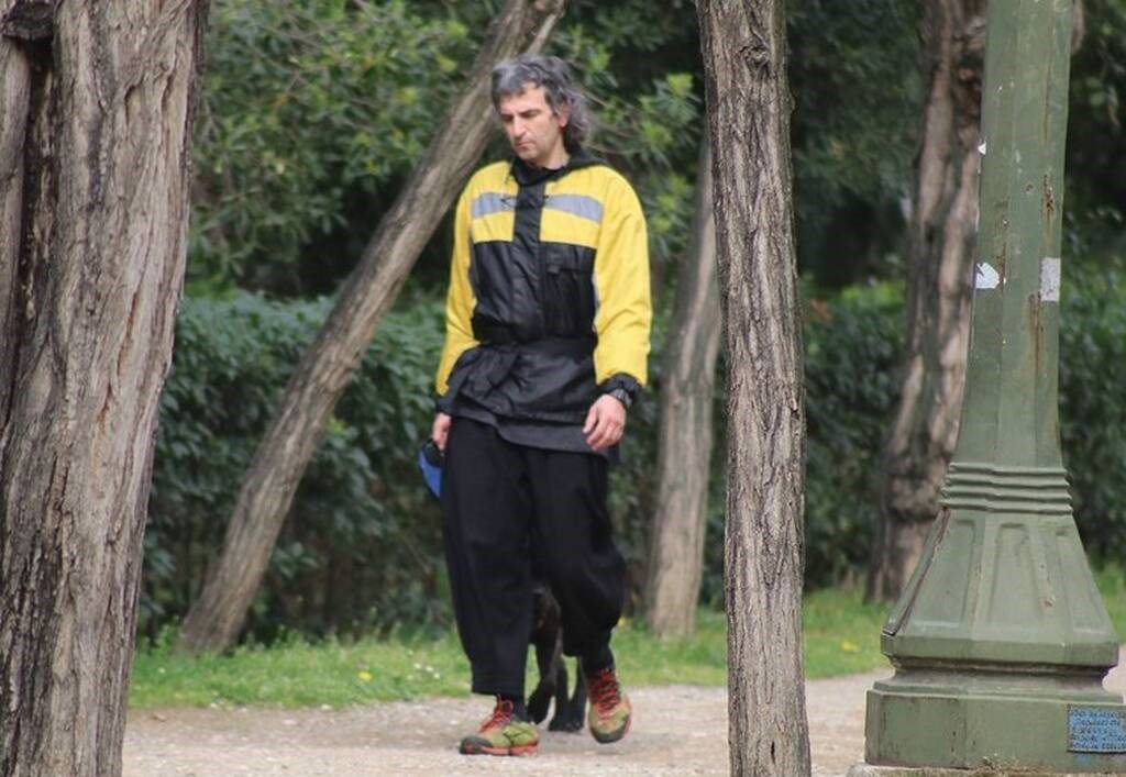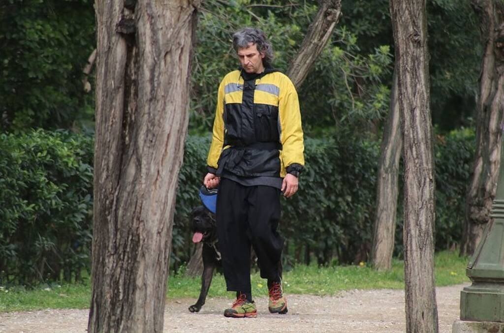Ο φωτογραφικός απαθανάτισε τον Άρη Σερβετάλη σε βόλτα που έκανε στο Ζάππειο παρέα με το σκύλο του.