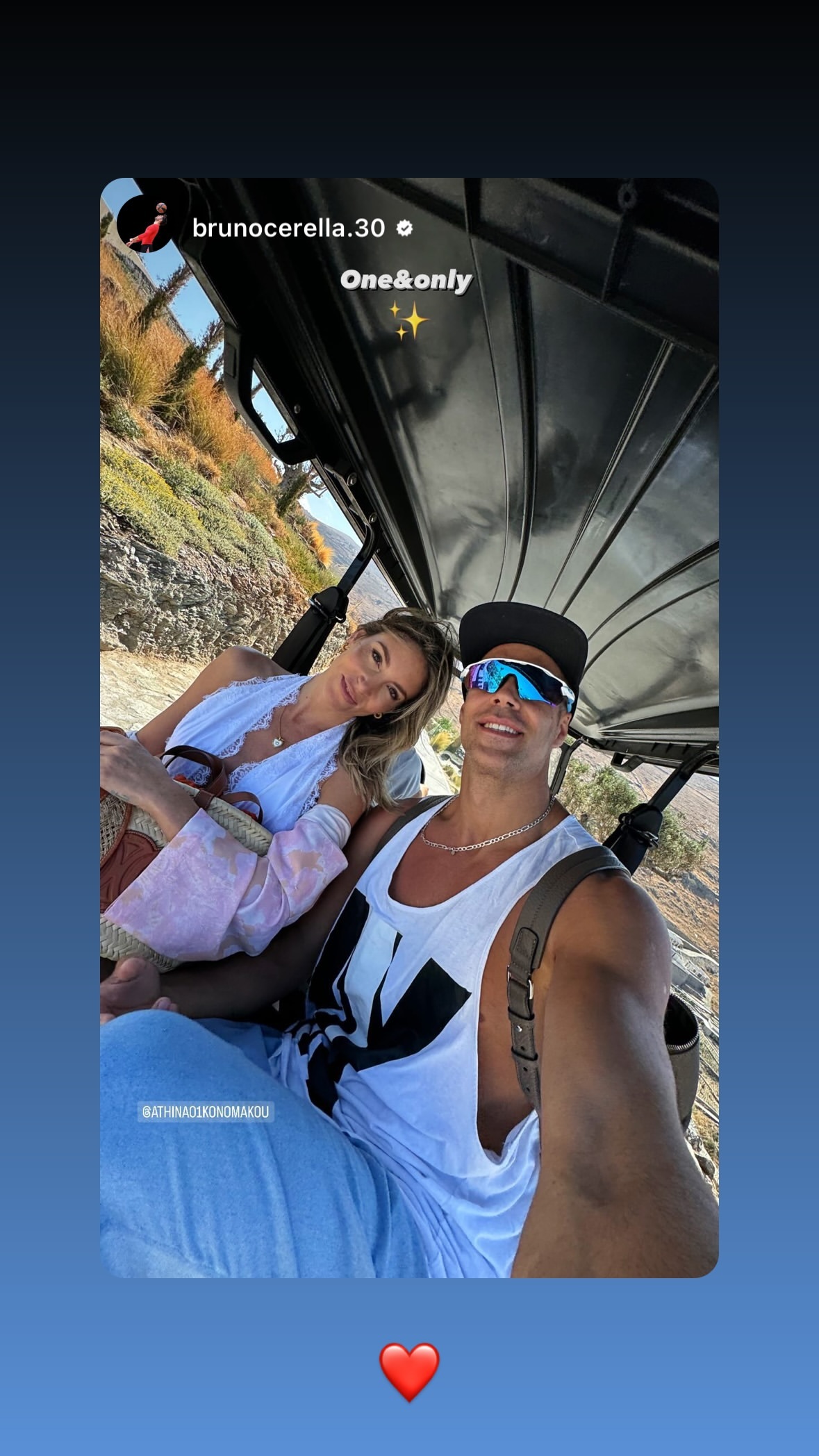 «Μία και μοναδική». Αυτό έγραψε πάνω στη φωτογραφία ο Μπρούνο Τσερέλα κάνοντας tag την Αθηνά Οικονομάκου.