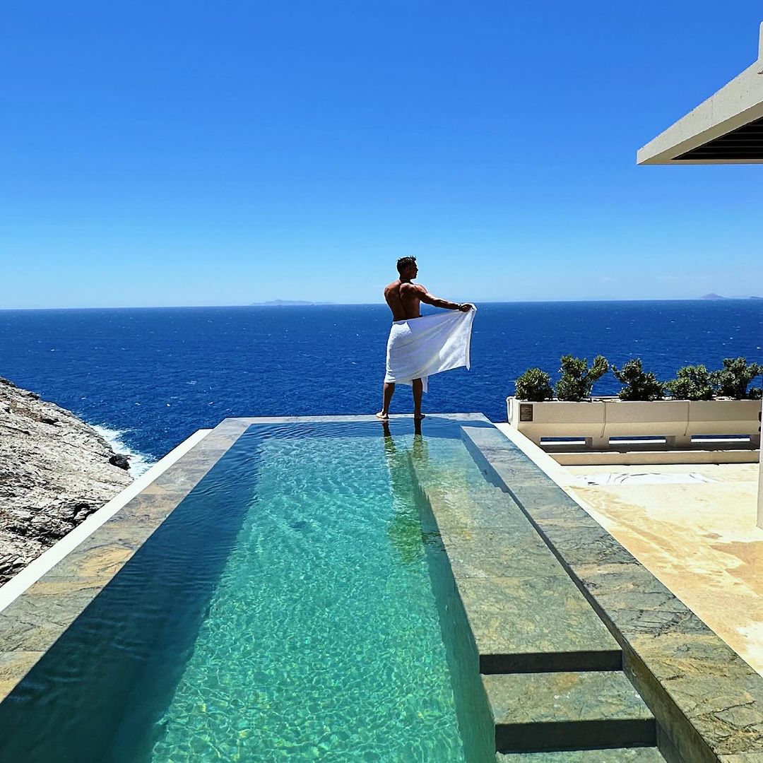 Λίγες ώρες αργότερα, ο γοητευτικός επιχειρηματίας και μπασκετμπολίστας δημοσίευσε δικές του φωτογραφίες από το ξενοδοχείο στον λογαριασμό του στο instagram, στις οποίες τον βλέπουμε να ποζάρει στην πισίνα μόνο με την πετσέτα του.