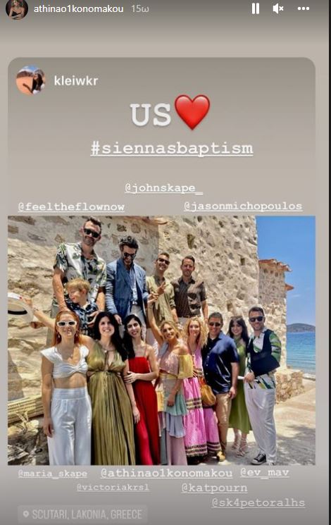 Η Αθηνά Οικονομάκου και ο Φίλιππος Μιχόπουλος επέλεξαν να βαπτίσουν την κόρη τους στο Σκουτάρι Λακωνίας.