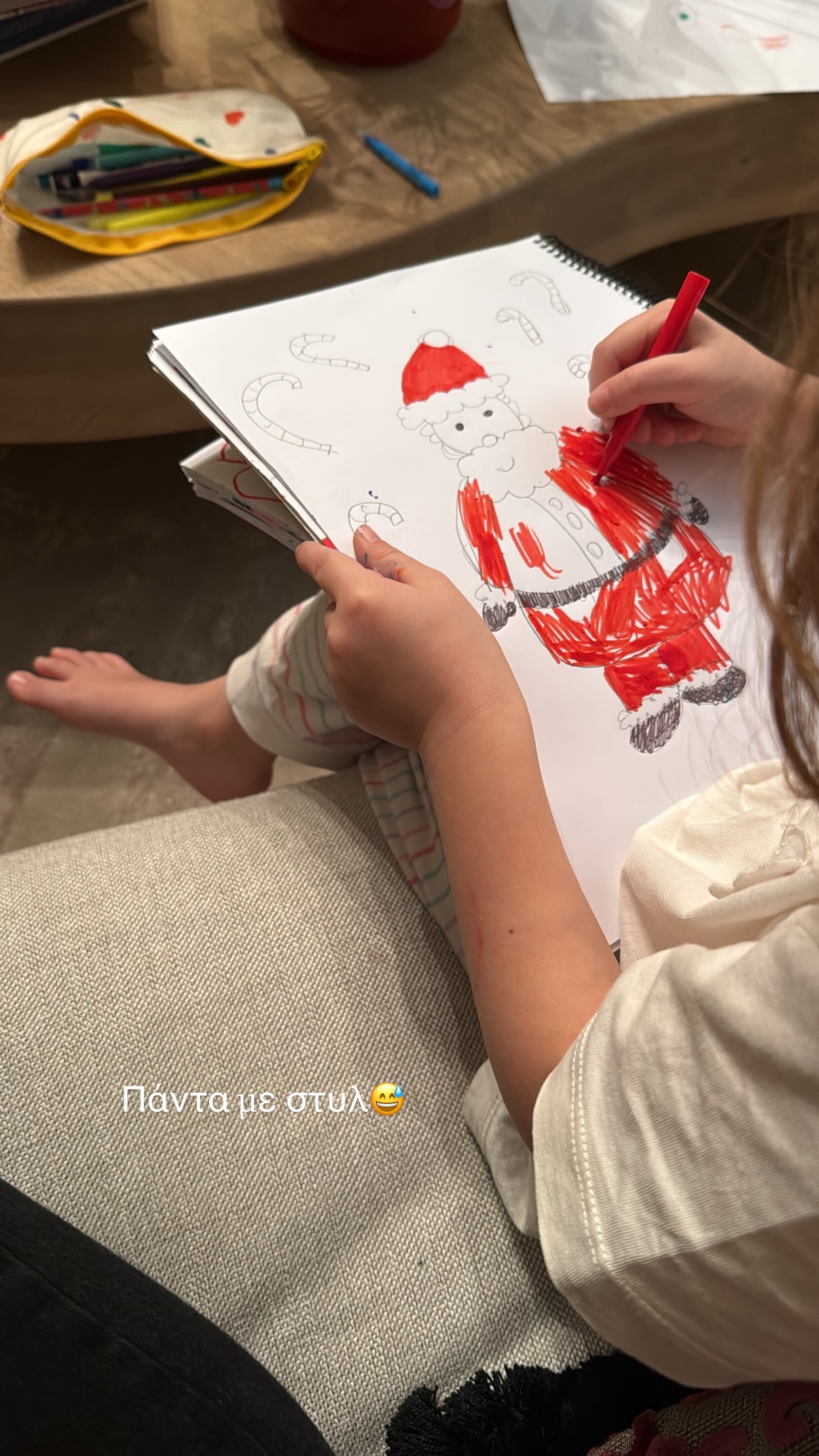 Σε ένα από τα στιγμιότυπα που ανήρτησε η Αθηνά Οικονομάκου, βλέπουμε ότι η κορυφή του δέντρου δεν έχει στολιστεί ακόμα και όπως έγραψε περιμένουν τον σύντροφό της για να διακοσμήσει και το υπόλοιπο δέντρο.