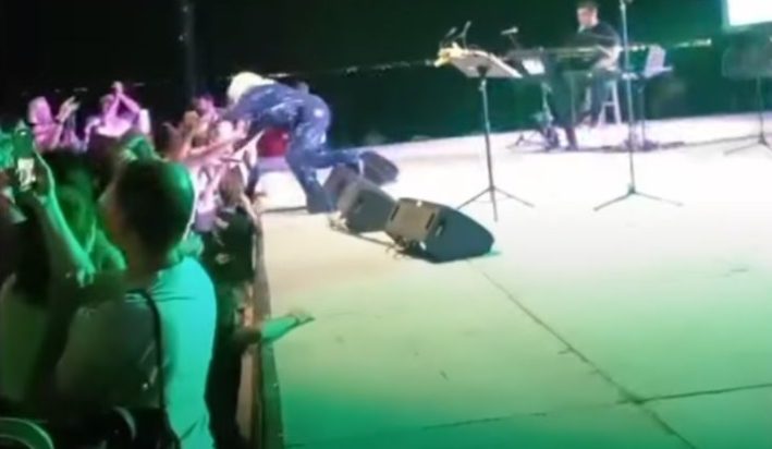 Κατά τη διάρκεια της εμφάνισής της και ενώ χόρευε, η τραγουδίστρια σκόνταψε σε ένα ηχείο που βρισκόταν πάνω στην σκηνή, με αποτέλεσμα να πέσει από την εξέδρα που είχε στηθεί για τις ανάγκες της συναυλίας και να βρεθεί στο κενό από ύψος περίπου ενός μέτρου.