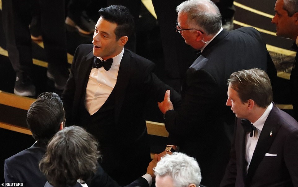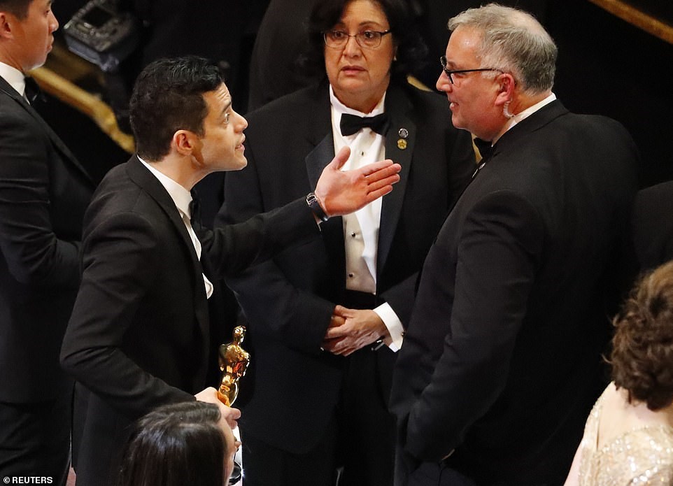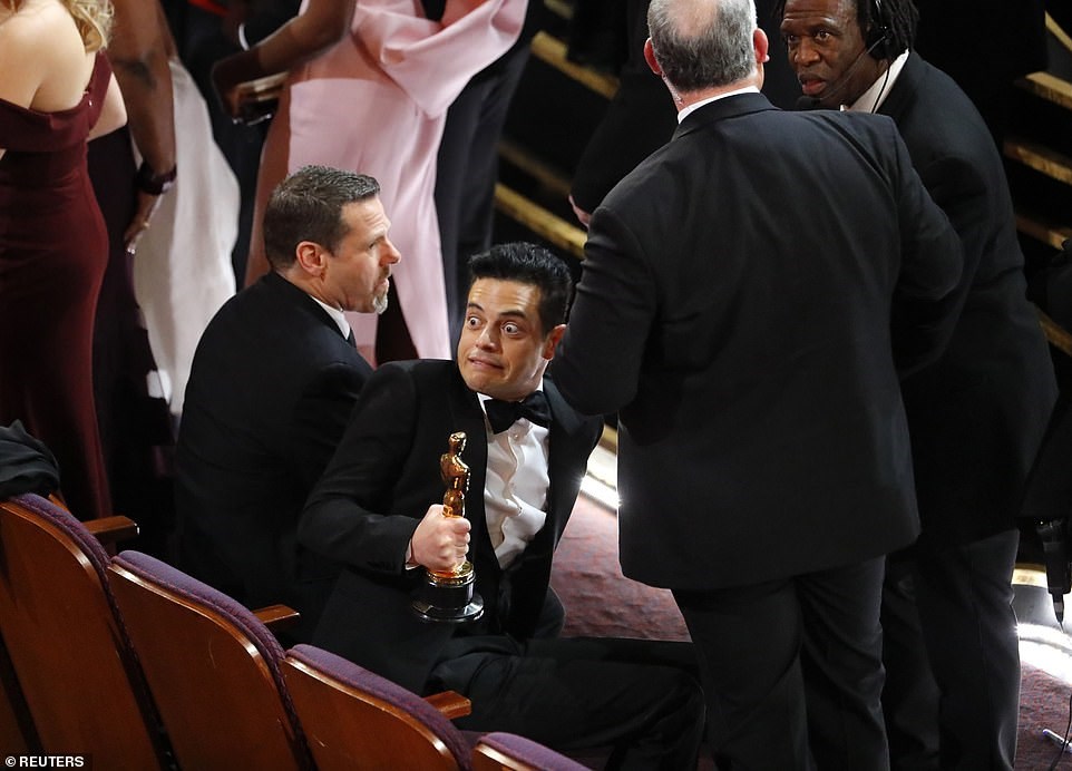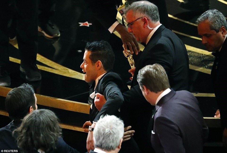 Αφού αποθέωσε τη σύντροφό του από σκηνής αποδεχόμενος το Όσκαρ για Α Ανδρικό Ρόλο ο Ράμι Μάλεκ πήγε να κατέβει τις σκάλες και κυριολεκτικά γκρεμοτσακίστηκε. Κοντά του έτρεξαν αμέσως νοσηλευτές και οι υπεύθυνοι της διοργάνωσης για να προσφέρουν στον σταρ τις πρώτες βοήθειες.