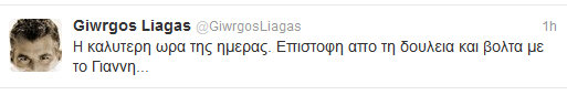 Πριν λίγη ώρα, ο Γιώργος Λιάγκας μέσα από το twitter, μας περιέγραψε ποια είναι η καλύτερη ώρα της ημέρας του!