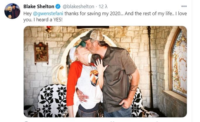 Με μία φωτογραφία όπου εκείνη επιδεικνύει το διαμαντένιο δαχτυλίδι της ανακοίνωσαν τον αρραβώνα τους ο Μπλέικ Σέλτον και η Γκουέν Στεφάνι. Οι δύο καλλιτέχνες γνωρίστηκαν τον Απρίλιο του 2014 όταν η Στεφάνι αντικατέστησε την Κριστίνα Αγκιλέρα στο The Voice. Η σπίθα ανάμεσά τους είναι ολοφάνερη από την κοινή εμφάνισή τους σε εκπομπή τον Σεπτέμβριο του 2014 ενώ τον Οκτώβριο του 2015 είναι πλέον και οι δύο διαζευγμένοι από τους συντρόφους τους, τη Μιράντα Λάμπερτ εκείνος και από τον Γκάβιν Ρόσντεϊλ εκείνη, ενώ τον Νοέμβριο του 2015 επιβεβαίωσαν τη σχέση τους. Τον Φεβρουάριο του 2016 δημοσιοποίησαν κι επισήμως τη σχέση τους όταν εμφανίστηκαν μαζί στο κόκκινο χαλί για το πάρτι μετά τα Όσκαρ του Vanity Fair. Ακολούθησαν αρκετές δημόσιες εμφανίσεις και εξομολογήσεις αλλά και μουσικές συνεργασίες, ακόμη και εμφανίσεις με τους τρεις γιους της Στεφάνι από τον προηγούμενο γάμο της. Και πλέον ο Μπλέικ Σέλτον έκανε την πολυπόθητη πρόταση έπειτα από πέντε χρόνια σχέσης. “Έι ΓΚουέν Στεφάνι, ευχαριστώ που έσωσες το 2020 μου. Και την υπόλοιπη ζωή μου. Σ’ αγαπώ. Άκουσα το ΝΑΙ!” έγραψε σε ανάρτησή του στα social media ο σουπερστάρ της Country μουσικής.