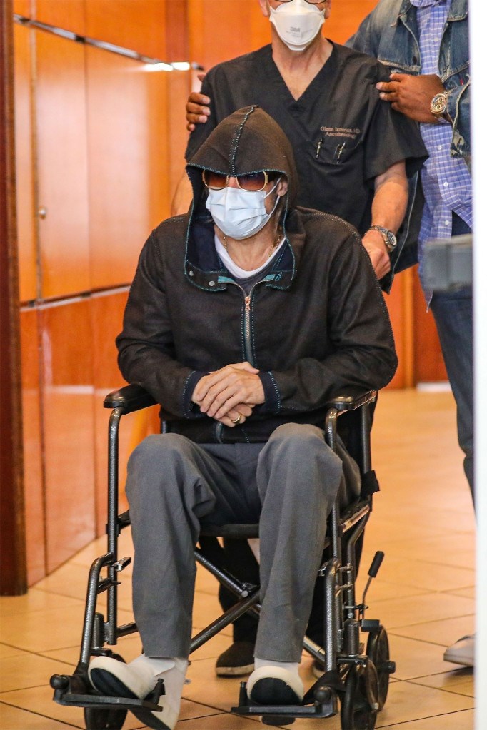 Ο 57χρονος σταρ φορούσε γυαλιά ηλίου, μάσκα και είχε σηκώσει την κουκούλα του φούτερ του τηρώντας χαμηλούς τόνους.