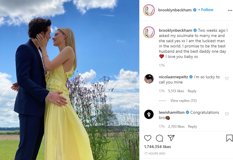 Ο Μπρούκλιν Μπέκαμ επιβεβαίωσε τον αρραβώνα με την σύντροφό του, Nicola Peltz. Ο μεγαλύτερος γιος της Βικτόρια και του Ντέιβιντ Μπέκαμ, ο οποίος είναι 21 ετών, κράτησε μυστική για λίγες ημέρες την πρόταση γάμου, αλλά καθώς χθες βγήκαν τα πρώτα δημοσιεύματα, το ζευγάρι επέλεξε να το επιβεβαιώσει με αναρτήσεις στο instagram. Το μονόπετρο στο χέρι της ηθοποιού είναι εντυπωσιακό, όπως και η φωτογραφία αμέσως μετά την πρόταση γάμου, την οποία τράβηξε η μικρή αδελφή του Μπρούκλιν, Χάρπερ.