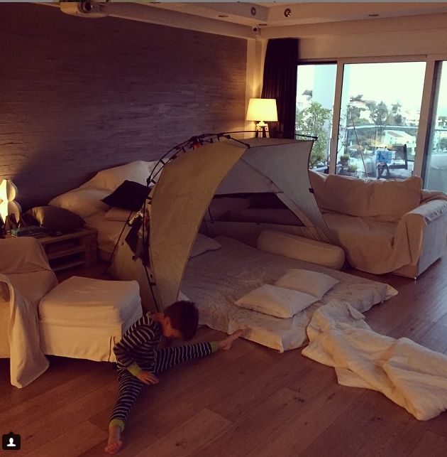 Η παρουσιάστρια μετέτρεψε το σπίτι της σε… camping και ανέβασε την παρακάτω φωτο στο Instagram.
