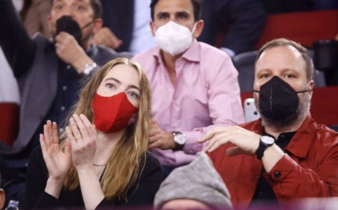 Η Emma Stone φοράει κόκκινη μάσκα και χειροκροτάει τον Ολυμπιακό. pic.twitter.com/JCfjiyUMsQ— It’s Sofi (@sofimetou) May 4, 2022