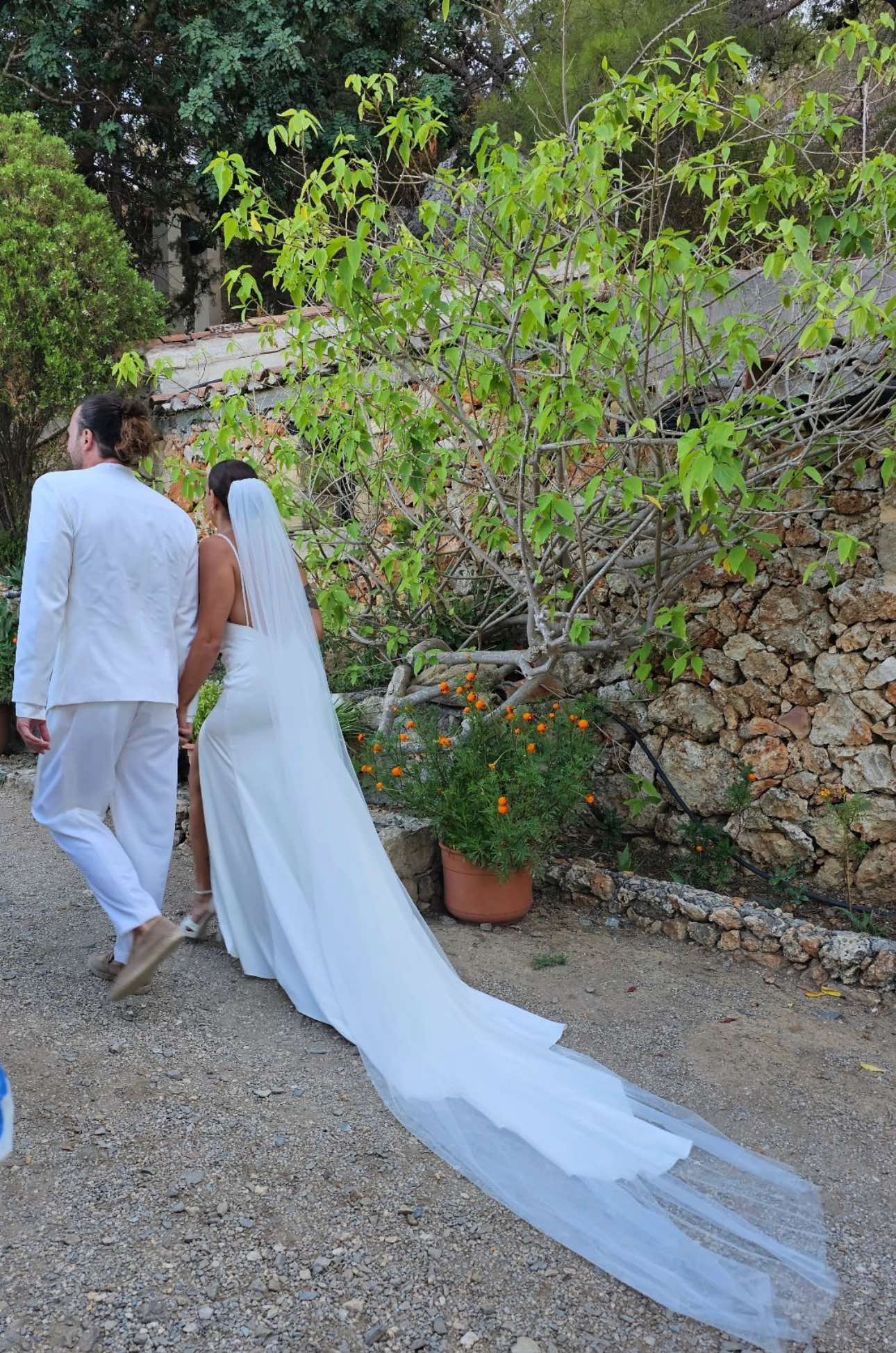 Η Ευρυδίκη Βαλαβάνη επέλεξε στενό νυφικό φόρεμα με ένα μακρύ πέπλο, ενώ ο Γρηγόρης Μόργκαν ντύθηκε γαμπρός στα λευκά.