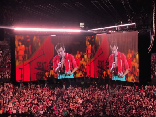 Στιγμιότυπα που καταγράφηκαν από θαυμαστές εμφανίζουν τον Χάρι Στάιλς να ζητά από το πλήθος να τον βοηθήσει να εντοπίσει τη δασκάλα του που είχε ακούσει ότι θα βρίσκεται στο κοινό στη συναυλία.
