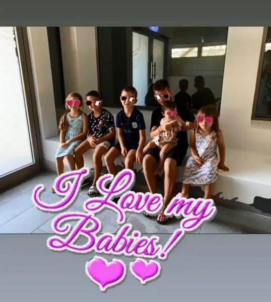 Η Ολυμπία Χοψονίδου έγινε μητέρα για έκτη φορά τη Δευτέρα 20 Ιανουαρίου. Το ζευγάρι μαζί με τα έξι παιδιά του επέλεξε την Πύλο για την αρχή των διακοπών τους. Το μοντέλο δημοσίευσε αρκετά στιγμιότυπα τόσο με τα παιδιά της, όσο και με τον σύζυγό της, Βασίλη Σπανούλη. Στη φωτογραφία ποζάρουν ο Θανάσης, ο Βασίλης, ο Δημήτρης, η Αιμιλία, η Αναστασία και η μπέμπα ενώ το σχόλιο στην εικόνα είναι «I love my babies».