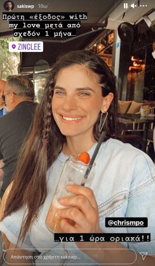 «Πρώτη έξοδος’ with my love μετά από σχεδόν ένα μήνα… για μία ώρα οριακά», έγραψε ως λεζάντα ο Σάκης Τανιμανίδης.