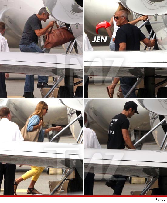 Μην πάει ο νους σας στο πονηρό! Τόσο ο George όσο και η Jennifer είναι δεσμευμένοι – και πάλι όμως, αυτό που συνέβη δεν εξηγείται πολύ εύκολα…Η Jennifer με τον σύντροφό της Justin Theroux και ο Clooney με την δική του σύντροφο, την Stacy Keibler επιβιβάστηκαν στο ίδιο ιδιωτικό αεροσκάφος στην Ελβετία. Φυσικά, όπου υπάρχουν paparazzi δεν μενει τίποτα κρυφό.