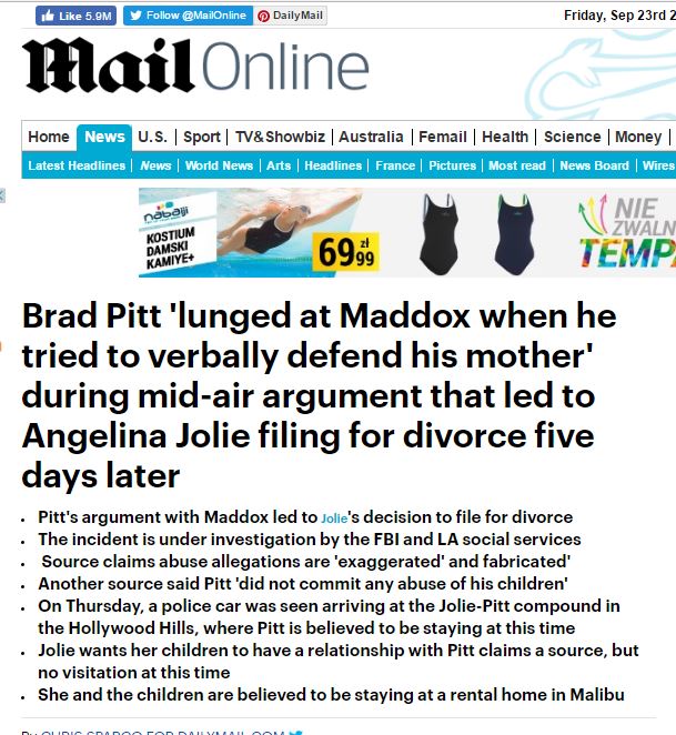 Όπως υποστηρίζει, επρόκειτο για μία άγρια αντιπαράθεση του Μπραντ Πιτ με τον γιο του Μάντοξ που έγινε κατά τη διάρκεια αεροπορικού ταξιδιού.