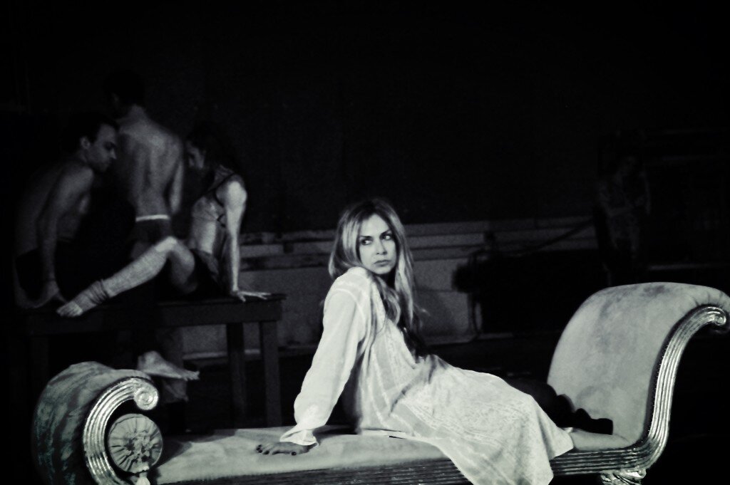 Η τελευταία φωτογραφία είναι από τις πρόβες της παράστασης, όπου η Άννα Βίσση υποδυόμενη την ‘Ροζάνα’ είναι στην κρεβατοκάμαρά της.