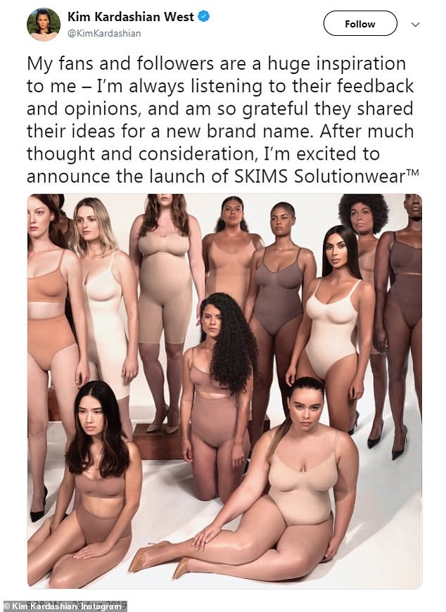 Η τηλεπερσόνα αναλαμβάνει διάφορες επιχειρηματικές δράσεις. Αυτήν τη φορά παρουσίασε σειρά εσωρούχων που διαμορφώνουν το σχήμα του σώματος και την ονόμασε SKIMS. Η αρχική ονομασία Kimono είχε προκαλέσει σάλο για ασέβεια στην κουλτούρα και τον πολιτισμό της Ιαπωνίας και έτσι η Κιμ μετά τον σάλο αναγκάστηκε να μετονομάσει τη σειρά της.