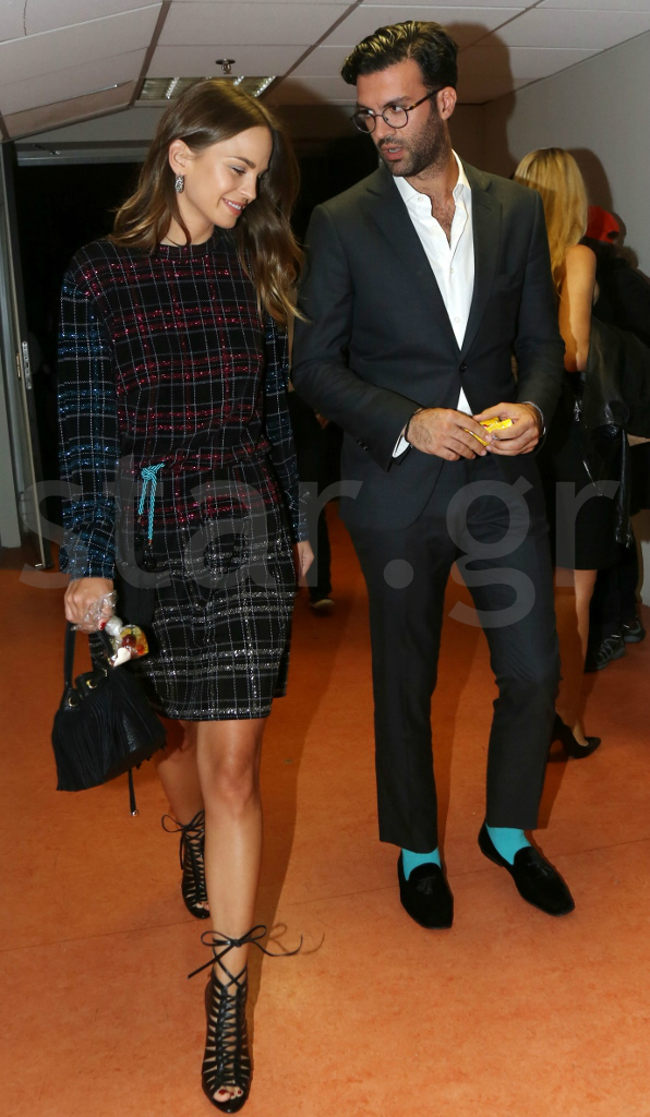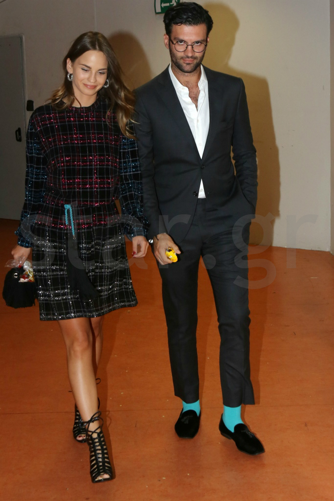 Στην πρεμιέρα, το βράδυ της Δευτέρας, σε κινηματογράφο στο Μαρούσι, ο σύντροφος της ηθοποιού εμφανίστηκε με γκρι κουστούμι, λευκό πουκάμισο, μαύρα παπούτσια και κάλτσες σε… έντονο γαλάζιο χρώμα,.