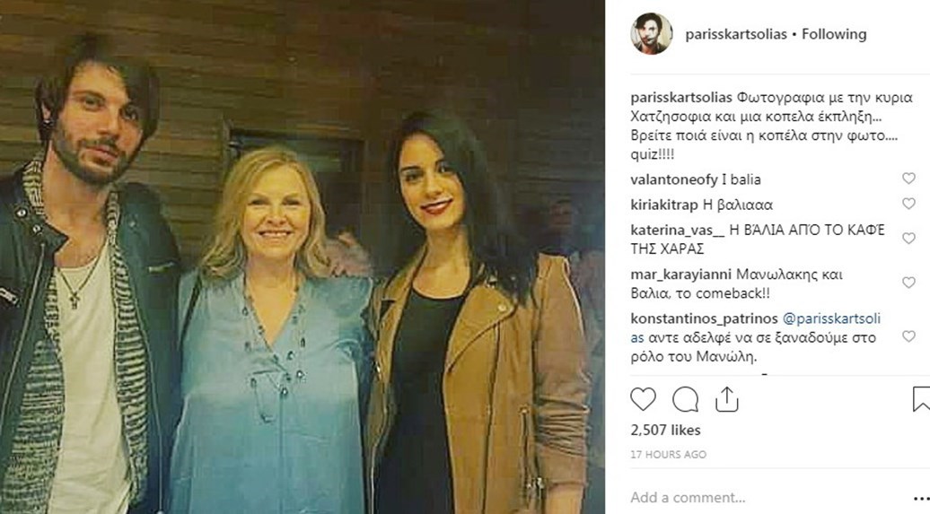 Αυτή είναι μάλιστα και η πρώτη φορά που βλέπουμε πως είναι σήμερα η Βάλια, της οποία τα ίχνη είχαν χαθεί, μετά το τέλος του Καφέ της Χαράς. Η Έφη Ρασσιά είναι κυριολεκτικά αγνώριστη, ενώ η φωτογραφία που ανέβασε ο Πάρης Σκαρτσολιάς στο Instagram έκανε τα σχόλια των διαδικτυακών του ακολούθων να μη σταματούν στιγμή.