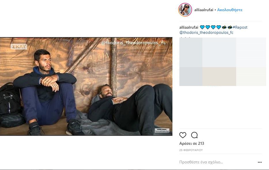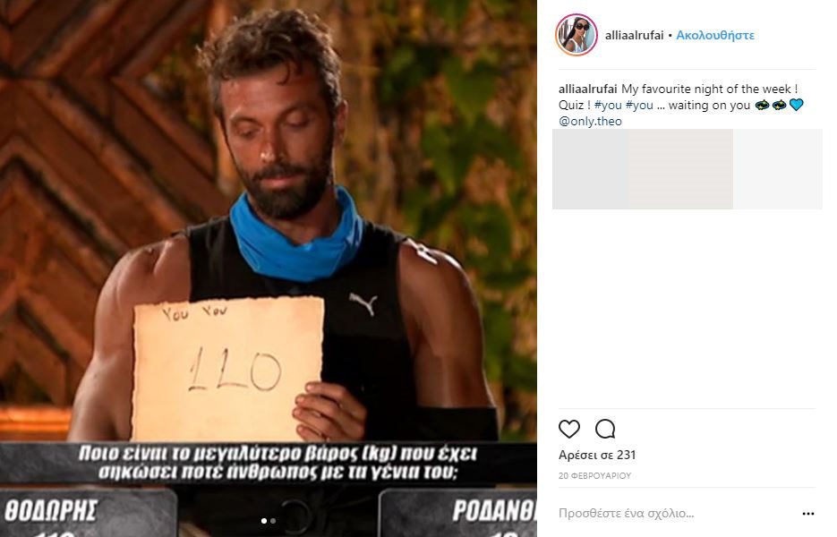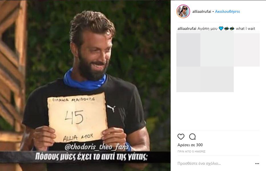Με τον Θοδωρή είναι καιρό μαζί, ενώ κάνει πολύ συχνά δημοσιεύσεις στον προσωπικό της λογαριασμό στο Instagram με φωτογραφίες του συντρόφου της από το παιχνίδι.