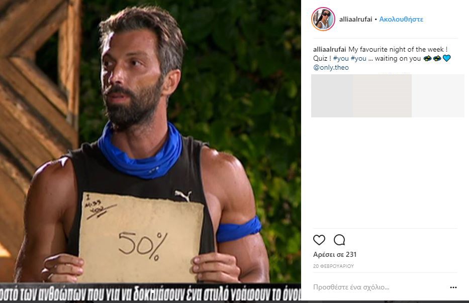 Στον αγώνα επάθλου επικοινωνίας που κέρδισαν οι “Μαχητές”, το γοητευτικό μοντέλο διάβασε ένα γράμμα από την αγαπημένη του Αλία Αλ Ρουφάι και συγκινήθηκε ιδιαίτερα.