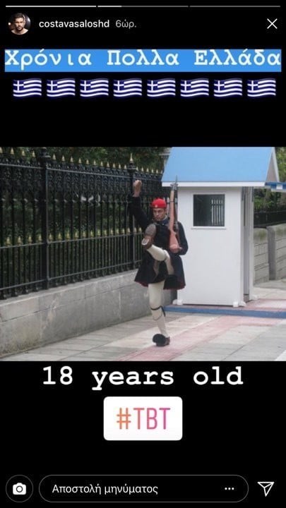 Φωτογραφίες από τότε που ήταν 18 χρονών και υπηρετούσε ως Εύζωνας της Προεδρικής Φρουράς, ανέβασε χθες στο Instagram ο Κωνσταντίνος Βασάλος, με αφορμή την Εθνική Επέτειο της 25ης Μαρτίου.