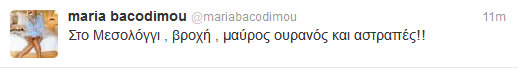 Που βρίσκεται η Μαρία Μπακοδήμου αυτή τη στιγμή και τι καιρό κάνει εκεί; Η απάντηση μέσω Twitter…
