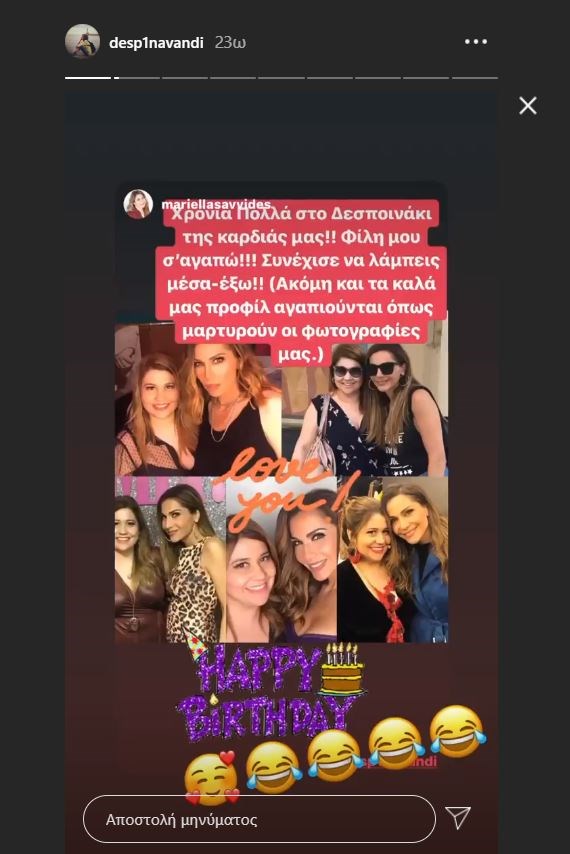 Τα 51α χρόνια της έκλεισε η Δέσποινα Βανδή στις 22 Ιουλίου και οι διάσημοι φίλοι της έσπευσαν να της ευχηθούν για τα γενέθλιά της γεμίζοντας το instagram φωτογραφίες και ευχές.