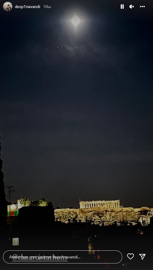 Το βράδυ της Δευτέρας, η τραγουδίστρια και ο ηθοποιός βρέθηκαν σε γνωστό ξενοδοχείο στο κέντρο της πόλης όπου απόλαυσαν το εντυπωσιακό φεγγάρι και δείπνησαν με θέα την Ακρόπολη.