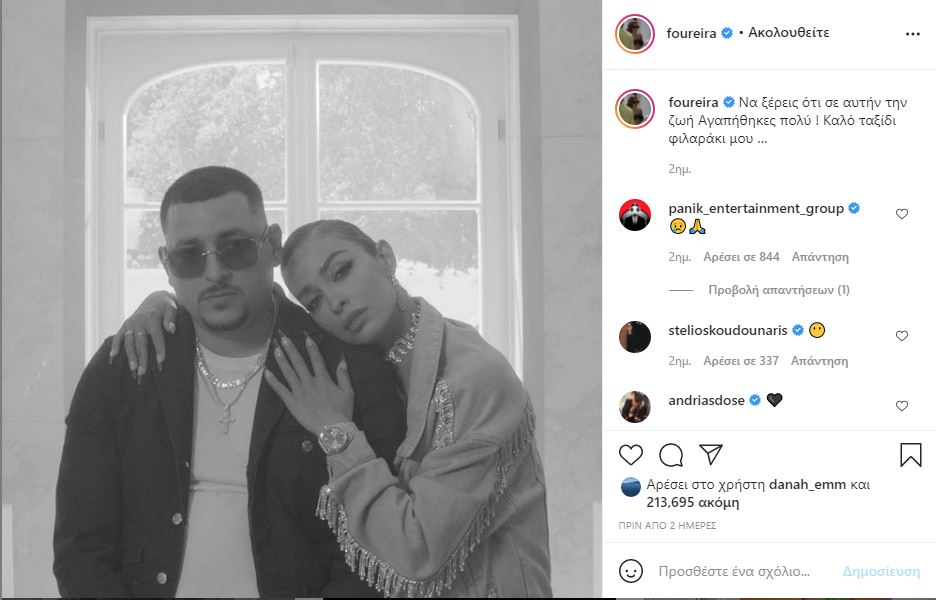 Η Ελένη Φουρέιρα ήταν συντετριμμένη στην κηδεία του φίλου και συνεργάτη της ενώ σε ανάρτηση στο instagram είχε δημοσιεύσει μία κοινή φωτογραφία τους. Στη λεζάντα έγραψε: “Να ξέρεις ότι σε αυτήν τη ζωή αγαπήθηκε πολύ! Καλό ταξίδι φιλαράκι μου…”.