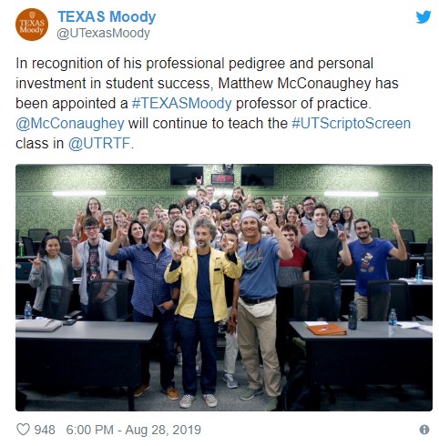 Ο βραβευμένος με Όσκαρ ηθοποιός είναι πλέον και επίσημα μέλος του διδακτικού προσωπικού του Πανεπιστημίου του Τέξας, ως καθηγητής πρακτικής στο Moody College of Communication.