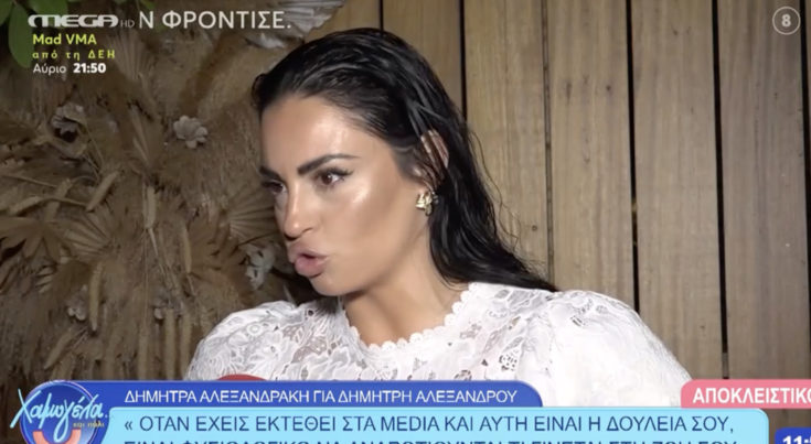 Η Δήμητρα Αλεξανδράκη βρέθηκε σε βραδινή έξοδο και μίλησε στην κάμερα της εκπομπής Χαμογέλα και πάλι. Το μοντέλο και influencer απάντησε –με τον γνώριμο άμεσο τρόπο της– σε ερωτήσεις για τον Δημήτρη Αλεξάνδρου και τις πρόσφατες φήμες που αφορούν την προσωπική του ζωή.