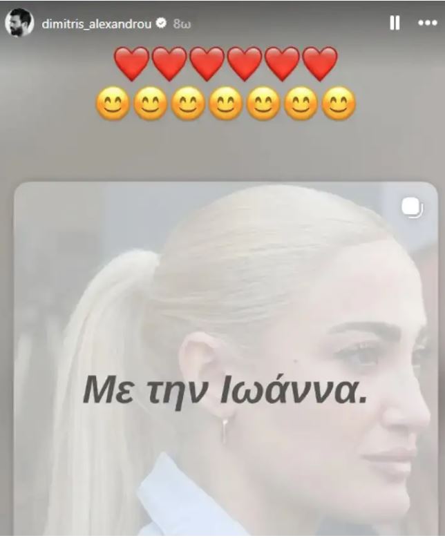 Με φόντο μία φωτογραφία της Τούνη, ο Δημήτρης Αλεξάνδρου έγραψε: «Με την Ιωάννα».